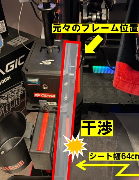 オジのは64㎝もあったのでフレーム配置変更が発生してしまいました。